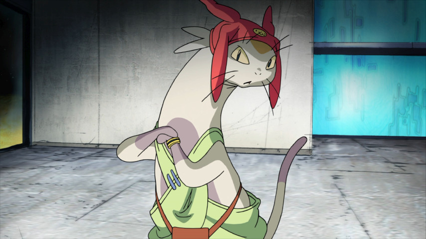 Some miracle, then, that Dandy adds up to more than just a one-note gag. Some of that I attribute to the way it gradually fuses its stock-in-trade nuttiness with moments that give its character a chance to be characters, and not just repositories of stock reactions. At least two episodes are set aside for QT and Meow each. In the former, QT ends up having a romance with another appliance; it starts off in a sweetly absurdist vein, akin to one of Stanisław Lem's Star Diaries, and then by degrees turns tragic. In the latter, Meow drops back in on his parents, gets stuck along with them (and everyone else) in a time loop, and the resulting Groundhog Day/All You Need Is Kill experience gives Meow a new appreciation for the family and the homeworld he once disdained.