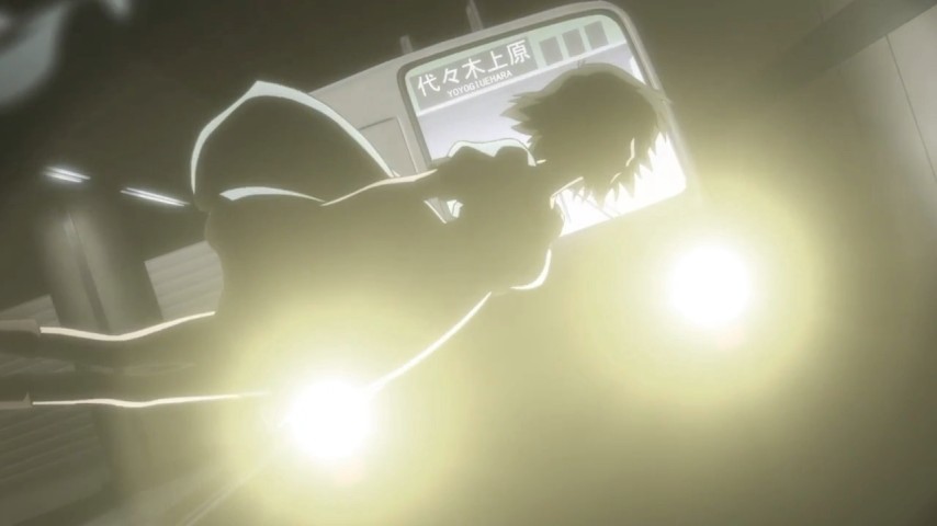 A few things in the show are iffy for me. One is the handling of Ruka's subplot, where Okabe tampers with causality enough to retroactively reverse his sex, as per Ruka's own desires. Later, he has to talk her out of it so that he can undo that particular alteration of causality. The show wisely makes this painful and difficult for everyone involved — this is the first time we see Mayuri actually angry! — and confronts how many conflicting principles are grinding against each other. But the way the story solves the problem is by having Ruka go out on a date with Okabe, the better to address her inchoate desires for him which have persisted across world-lines. It's complicated even further by the way Ruka is able to remember how Okabe stuck up for her as a boy in her previous world-line (an incremental plot thread; turns out Okabe isn't the only one who can remember such things). The resulting date is amusing, and in a way where Okabe, not Ruka, is the butt of the jokes. (It doesn't help that nobody else in the crew is romantically adept.) But the idea and its resolution seems muddled at best; it tries to take on issues of gender and sexuality the show simply isn't equipped to address, even if it builds in a fail-safe amount of tenderness and insight for everyone involved.