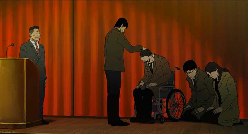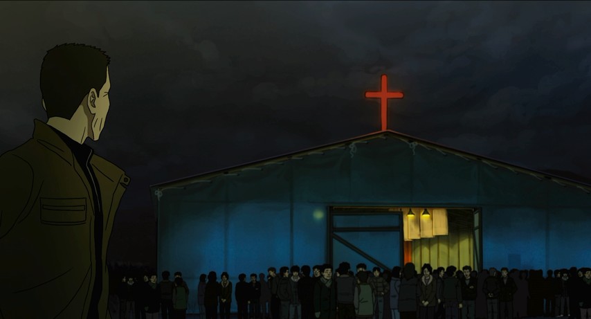 This is the second animated feature by Sang-ho Yeon, whose 2011 film King Of Pigs took me by the collar and rattled my eyeteeth some months back. The Fake followed in 2013, and it is more polished both in that it has better technical credits and tells a more ambitious and troubling story. Both films are now available domestically by way of Olive Films, as part of a newly inaugurated sublabel that deals in animated productions. They deserve the attention, since they both constitute examples of rare South Korean animated productions that aren't works-for-hire but original creations. And given how tough they are to swallow, they hint at how South Korean animation can draw effectively from that country's tradition of realistic cinema, rather than from anime or even escapism generally.