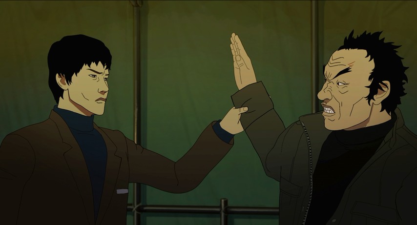 The Fake didn't have a huge budget, but it isn't hamstrung by that. Its character designs are clearly CGI-assisted, but they're animated with a close attention to how a subtle shift in body language or facial features can give away far more than a whole monologue, and they're surrounded by backgrounds and landscapes that have a painterly lushness. By the time the story had established itself, though, the style had become all but invisible. I paid attention to the animation only in the sense that it was a stylistic choice, a way to tell a story in a highly controlled fashion, not because I felt like it was short-changing its artistic potential as animation.