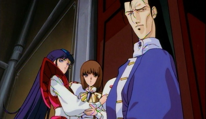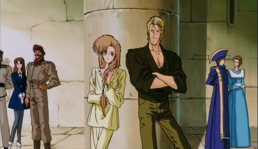 Here and there throughout the story are themes worth exploring, like the inherent right to freedom and agency even for beings like the fatimas. I won't go so far as to say the show doesn't explore them at all; major cogs in the plot, like Lachesis giving Clotho the opportunity to escape and find better things for herself, are geared around such things. But there's only so much time and opportunity to look into what they mean before the busywork of the plot sweeps everything else aside. The net effect is less a story making the best of its ingredients, and more of a pastiche that favors atmosphere and flavor rather than substance. And a perpetual downside of cherishing something like Five Star Stories as an artifact of its period is how painfully you're reminded of that fact all throughout. (I love Nobuteru Yuki's design work generally, but this incarnation of it has dated very badly).