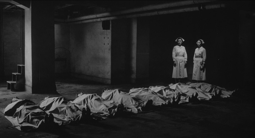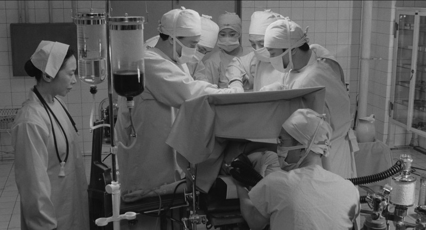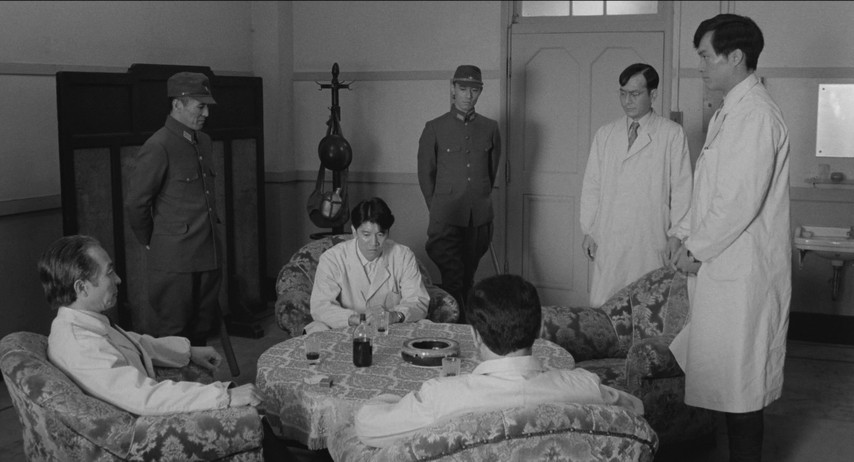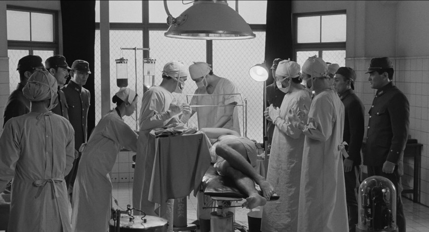Complicity in this story arrives never all at once, but by slow-boil degrees. Early in the film, a young girl is selected for a lung surgery which the Old Man intends to oversee, the better to demonstrate his continued value as a doctor and a leader. The operation is a botch — the girl dies on the table, strangling on her own blood — and the implication is that it's the Old Man's fault. But no one dares admit it; if his career goes, so does everyone else's. And so they grit their collective teeth and engage in a horrible charade where the operation is a success, but everyone must pretend the girl dies in her sleep that night. By the time the army officers come stalking in, with plans to put downed American airmen on the operating table for "science", everyone except Suguro has an excuse to do it. What remains of Suguro's integrity seems more like an impediment to his survival than any way to preserve his dignity. And before long there he is in the operating theater with the rest of them.