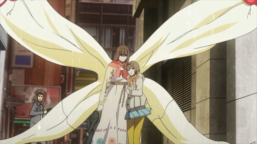 A tack like that is difficult to get right. It runs the risk of feeling like a mixed message, instead of an attempt to see things more holistically. But Tokyo Ghoul manages not to fall into that trap, and I think at least part of that lies in how the storytelling and worldbuilding are complementary, not contraindicated. Worldbuilding works best when it's a two-way street — when how the setting is embodied in the story gives the characters something to do that enriches that setting. What I saw of Monster Musume shot itself in the kneecaps by not doing this: the worldbuilding set up by the show (nonhumans live amongst us) wasn't leveraged in a meaningful way by the main storyline (dimwitted soft-porn comedy), and so all the stuff that actually seemed worth telling a story about was off in the margins and sidelines. In Tokyo Ghoul, all the important stuff is front-and-center, even if the character they chose to be the linchpin for all of it doesn't at first seem up to the job.