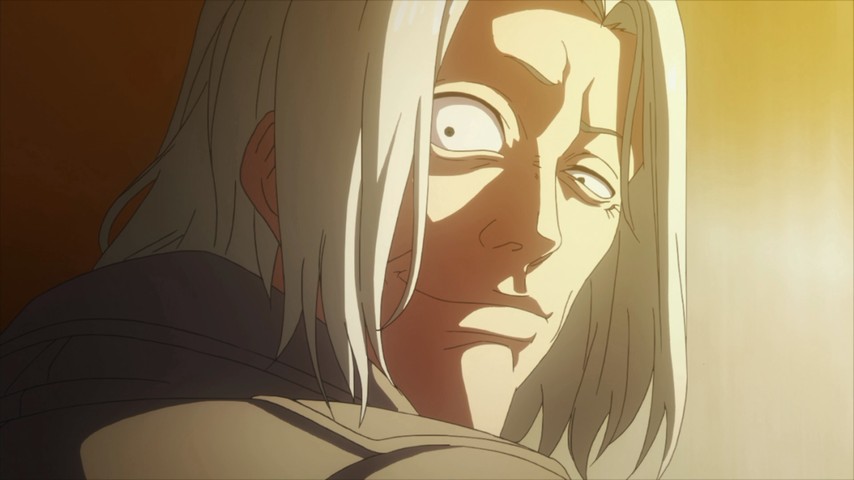There's never any question Kaneki is a good person and deserves the label of protagonist, but that's because of how he goes about trying to do the right thing, not because of what side he's on. Further support for this distinction comes by way of the people in the CCG. Among them are investigator Kureo Mado and his partner, Kōtarō Amon. The latter is a square-jawed, workmanlike fellow, but the former is a classic example of character design being destiny — he looks like Doc Brown with one popped eye and a smile that always looks like he's about to bite into something. Hunting ghouls is all he lives for, and it proves to be his undoing when he relies a little too heavily on the "quinque" (the bioweaponry CCG agents use against ghouls) and gets taken to pieces for it. But how the show handles his death is fascinating: those who survive him at the CCG, including Amon, are deeply affected by the loss. He many have been despicable to us, but to others, he mattered. Even someone as unsympathetic as Mado, the show seems to be arguing, will be lamented by someone somewhere. It's not just the good guys and the beautiful people for whom others will shed tears.