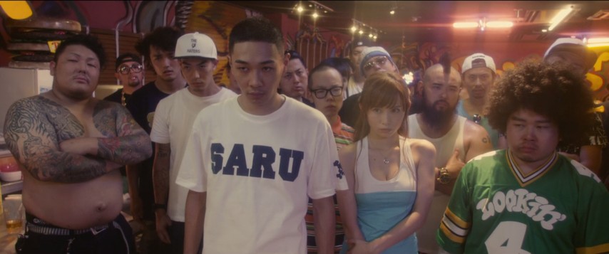 The story, such as it is, boils down to a beef — and a deliberately silly one at that, as we find out — between Mera (Ryōhei Suzuki, Gatchaman, My Love Story!!) the peroxide-blond leader of the (Ike)Bukuro Wu-ronz, and Kai (Young Dais), leader of the Musashino Saru gang. Kai and his crew just wanna hang out at a local diner and pump their sound systems in the parking lot; they're as likable and kids-next-door as Mera and his men are violent and sadistic. But Mera — the kind of guy who licks his swords after slicing someone's stomach open with them — wants the Sarus out of the picture, and to pull that off he's buddied up with Big Buppa (Riki Takeuchi), a leering Scarface-like gangster kingpin who chomps as eagerly on severed fingers as he does cigars.*