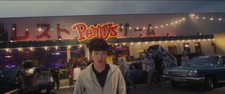 The movie takes place over the course of one long, violent night in a gaudy, cluttered Tokyo, a soundstage creation that's on a par with the synthetic London of Absolute Beginners, or the mini-Chicago of Streets of Fire (movies to which this one owes more than a few debts, I think). Between the burning trash barrels and the flickering neon, narrator Shō (Shōta Sometani, veteran of live-action adaptations like Ping Pong, Parasyte, Bakuman, and Devilman) schools the audience about the coming war between the various gang factions that rule the city streets.