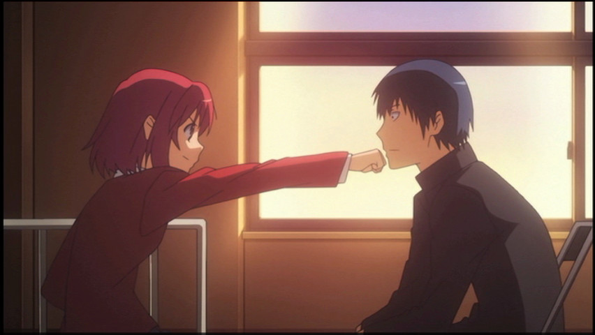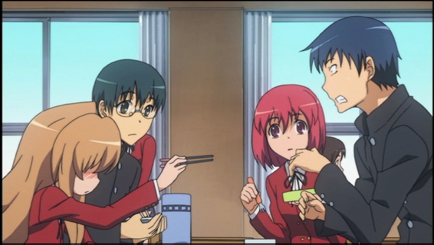 Taiga herself, by the way, goes from someone who can't speak the names of her classmates without snarling to someone who gives them friendship chocolate, and the fact that the evolution is credible and doesn't feel like something shoehorned into the material, says something. Some of it is a little lopsided — e.g., the strained relationship with her parents is kept mostly offscreen — but not so much so that the whole house seems ready to fall over.