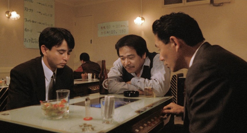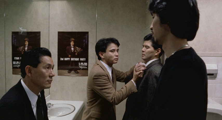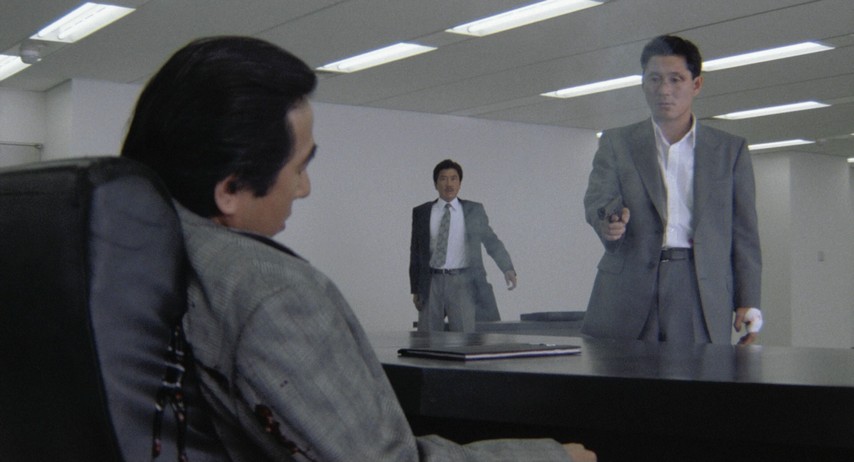 The movie’s coda is even bleaker. In a shot that mirror’s the movie’s opening, Kikuchi heads over to Nito’s office, where Nito's former right-hand man, now in charge, asks: "So you replace Iwaki?" and slides over a bundle of bills. "Yes," the rookie grins, "but I’m much smarter." And so in the end nothing has changed—much like Azuma himself never changes. In other movies, this would be a deficit; in this one, it is simply consistency with the overall plan.