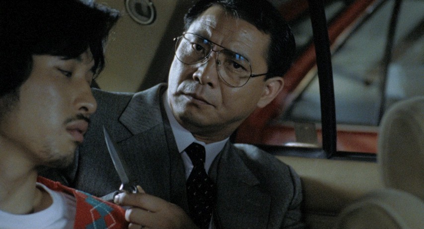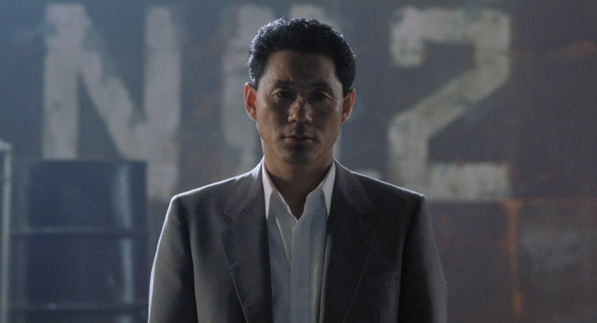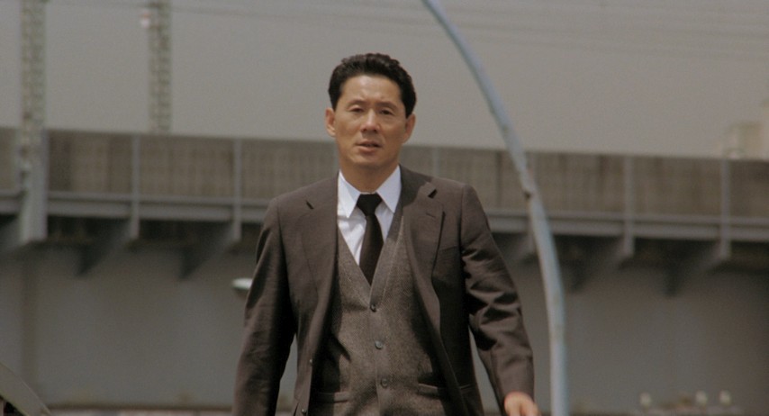 Gradually, in pieces, the movie provides us with a semblance of a plot. We learn that there is a drug-smuggling operation going on, run by a businessman named Nito (long-faced Ittoku Kishibe) who has a savage right-hand man, Kiyohiro (Korean actor and rock singer Hakuryu). The gang uses a source inside the police department to obtain confiscated drugs, putting them back into circulation. Their supplier inside the department, as it turns out, is none other than Iwaki. Iwaki takes Azuma out for lunch at one point and tells him everything; the whole scene is shot without sound through a plate-glass window and shows only Azuma, sitting, listening, stone-faced. We do not need to hear the conversation to know its significance. His expression, or lack of one, says it all.