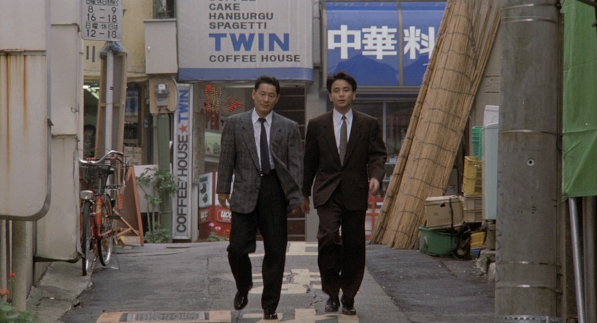Azuma is assigned a new partner, Kikuchi (Makoto Ashikawa, another Kitano regular), an eager-beaverish rookie who seems overwhelmed just by the idea of being a cop. Azuma doesn’t even bother to say hello to him the first time he shows up, and treats him like dirt throughout the film. He stiffs Kikuchi for cab fare on the way to a crime scene, signs an apology for a police beating he administered using Kikuchi’s name, smacks him to get his attention like a parent disciplining an unruly child, borrows money from him indiscriminately, brags to him about accidentally shooting a neighbor’s kid ("I was actually aiming for him," he laughs), and on and on.