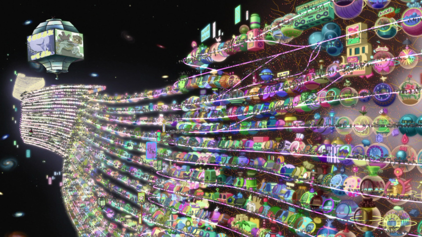 What's the definition of a "kid's movie" — one made for kids, or one about kids? Most of us would tilt towards the former, but Welcome to the Space Show cuts a path about halfway between those two poles. It's got the form and the format of a kid's movie — albeit one of staggeringly wide gauge — but it also sports some of the ambition and the ingredients of a movie aimed at their parents, or the kids' older siblings, at least. It also serves, perhaps unwittingly, as an example of how many films from Japan that are aimed at younger audiences walk that line, and may give pause to parents who aren't entirely aware of what they're getting into. If said parents wrinkle their nose at this, I say they're missing out.
